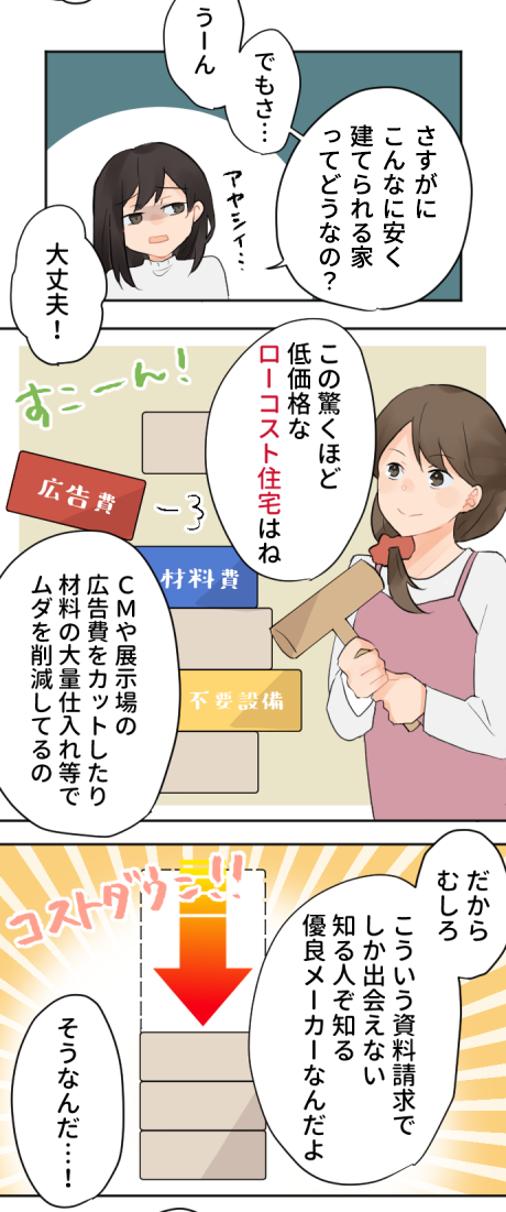 イラスト文字:カタログ見ないと、建てて後悔するところだった〜