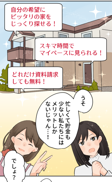 イラスト文字:カタログ見ないと、建てて後悔するところだった〜