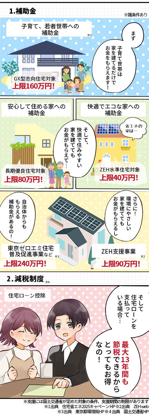 まだまだ低金利も続いているし、支援も手厚い今がお得に家を建てるチャンスなのよ!